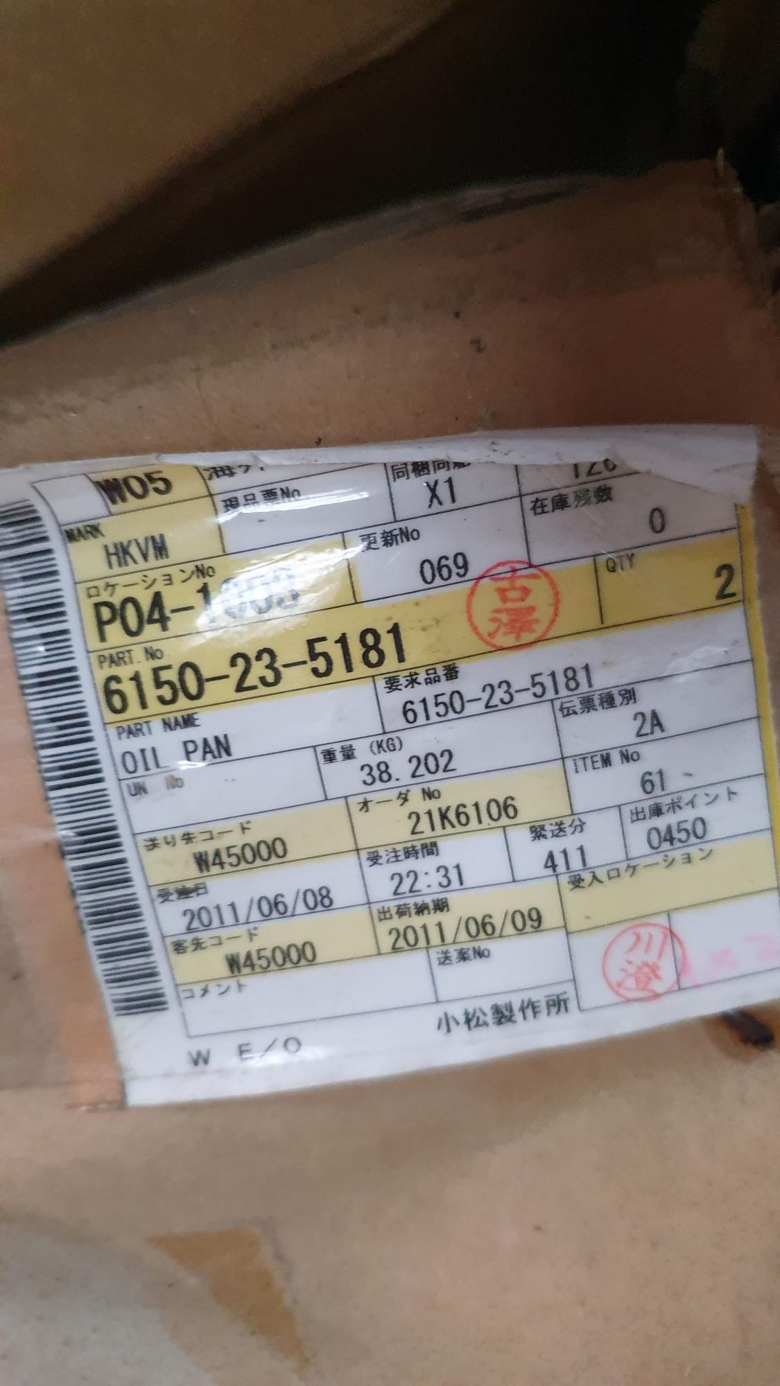 Поддон картера KOMATSU 6150-23-5181